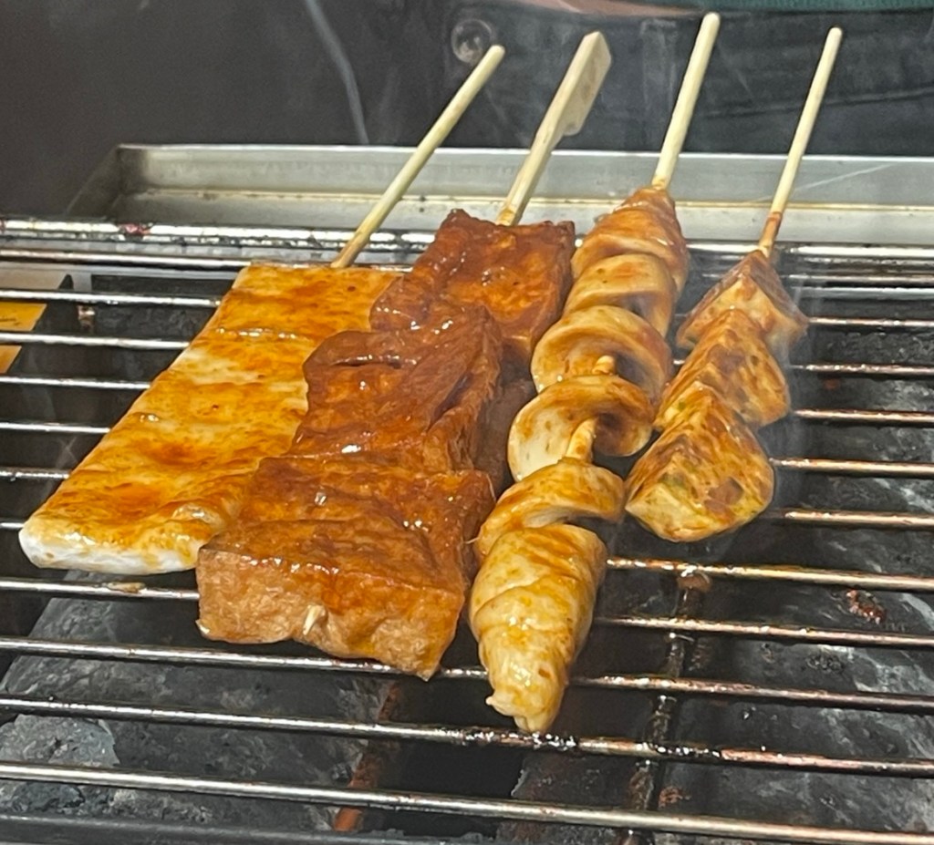 Along with our drinks, we ordered a variety of grilled barbecues: Rice Cake, Tofu, Sausage, and Veggie Balls (₱50 per stick). The tofu and veggie balls stood out the most, their soft, while the rice cake has a slightly chewy texture resembling tikoy. The sausage, however, was surprisingly bland—good thing the sauce and seasoning saved it, I mean all of it!