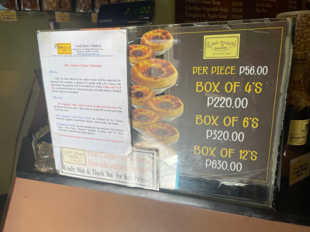 A short walk along Ongpin Street led us to the famous Lord Stow’s Bakery, its inviting aroma of freshly baked pastries drawn us in. A foreigner was filming a vlog about their egg tarts as we entered, adding to the store’s bustling charm. It’s a small eatery with a few chairs serving coffee, pasta and more. We got a box of six egg tarts (₱320) and upon our first bite, I understood the hype. The flaky crust gave way to a smooth, creamy custard that was perfectly balanced—not too sweet with enough softness. If I weren’t trying to cut down on sugar, I could have easily devoured the whole box!