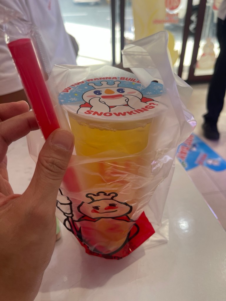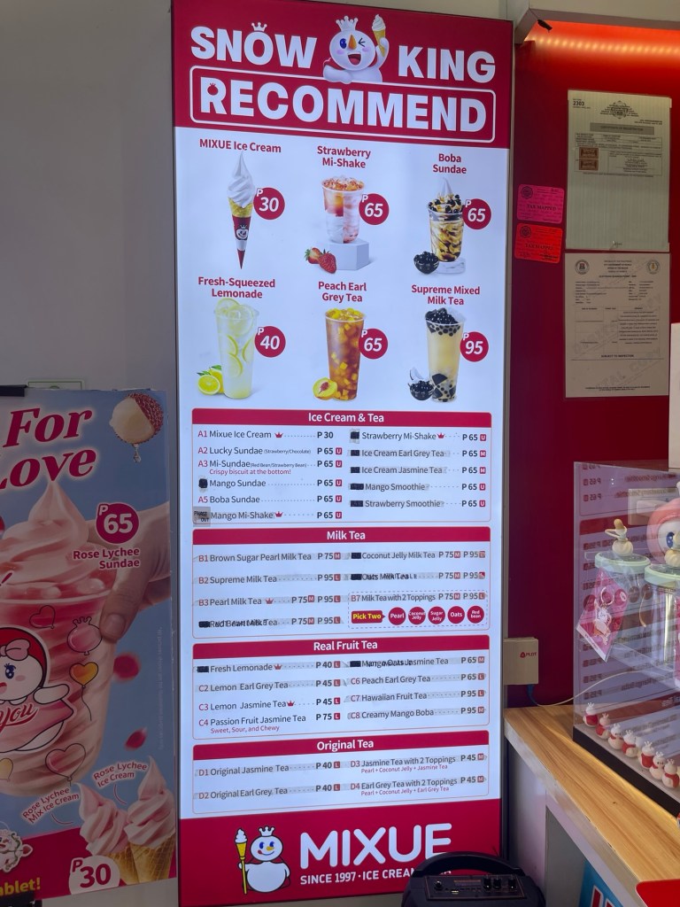 Our final stop was Mixue Ice Cream Shop on Dasmariñas Street, a random discovery while searching for something to quench our thirst. The store had cute snowman (Snow King) products displayed and I regret not trying their ice cream. Instead, we ordered a Peach Earl Grey Tea, which had just the right amount of sweetness with fruit bits—a refreshing way to end our food crawl.